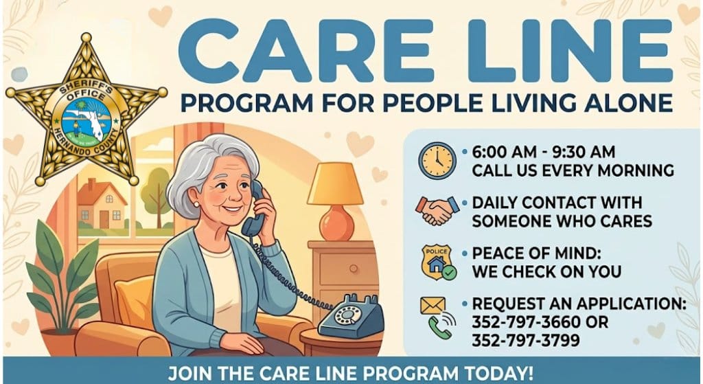 The Hernando County Sheriff's Office (HCSO) continues to offer its free Care Line program, a vital service designed to provide regular welfare checks for residents living alone. Initiated over 30 years ago by former Sheriff Tom Mylander, the program was created in response to the challenges faced by numerous senior citizens in Hernando County who lived without nearby family or friends to check on them. The Care Line has operated consistently, seven days a week, 365 days a year, since its inception.